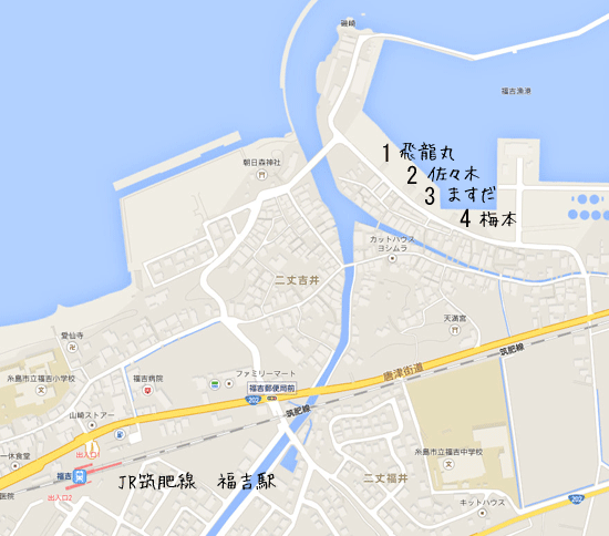 福吉漁港漁港は、糸島半島の西の下辺りに位置しています。