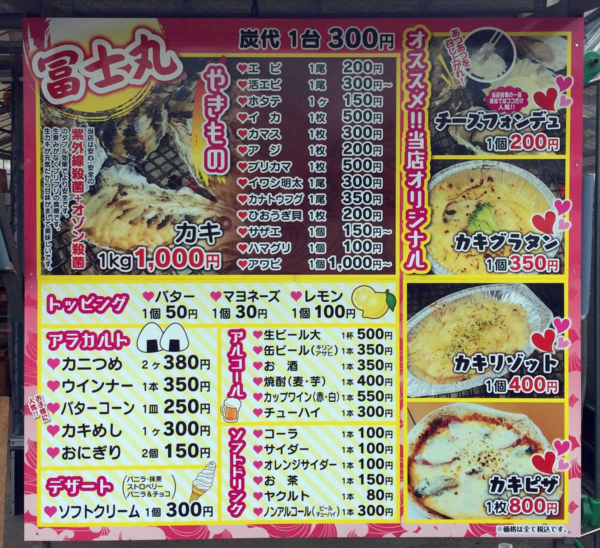 | 牡蠣小屋 | 火種 | 店頭メニュー |
