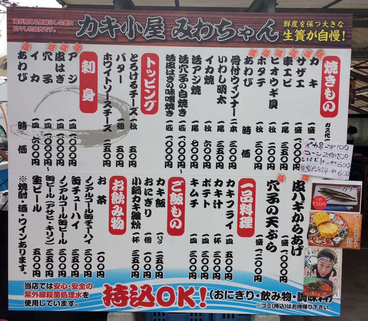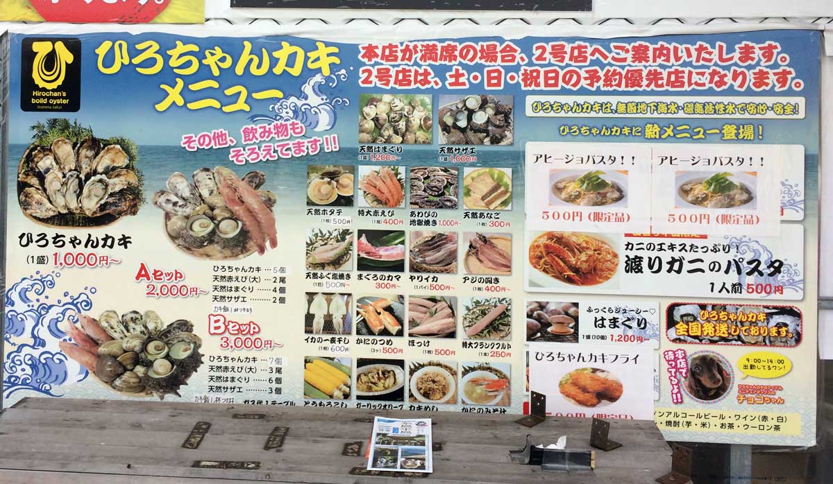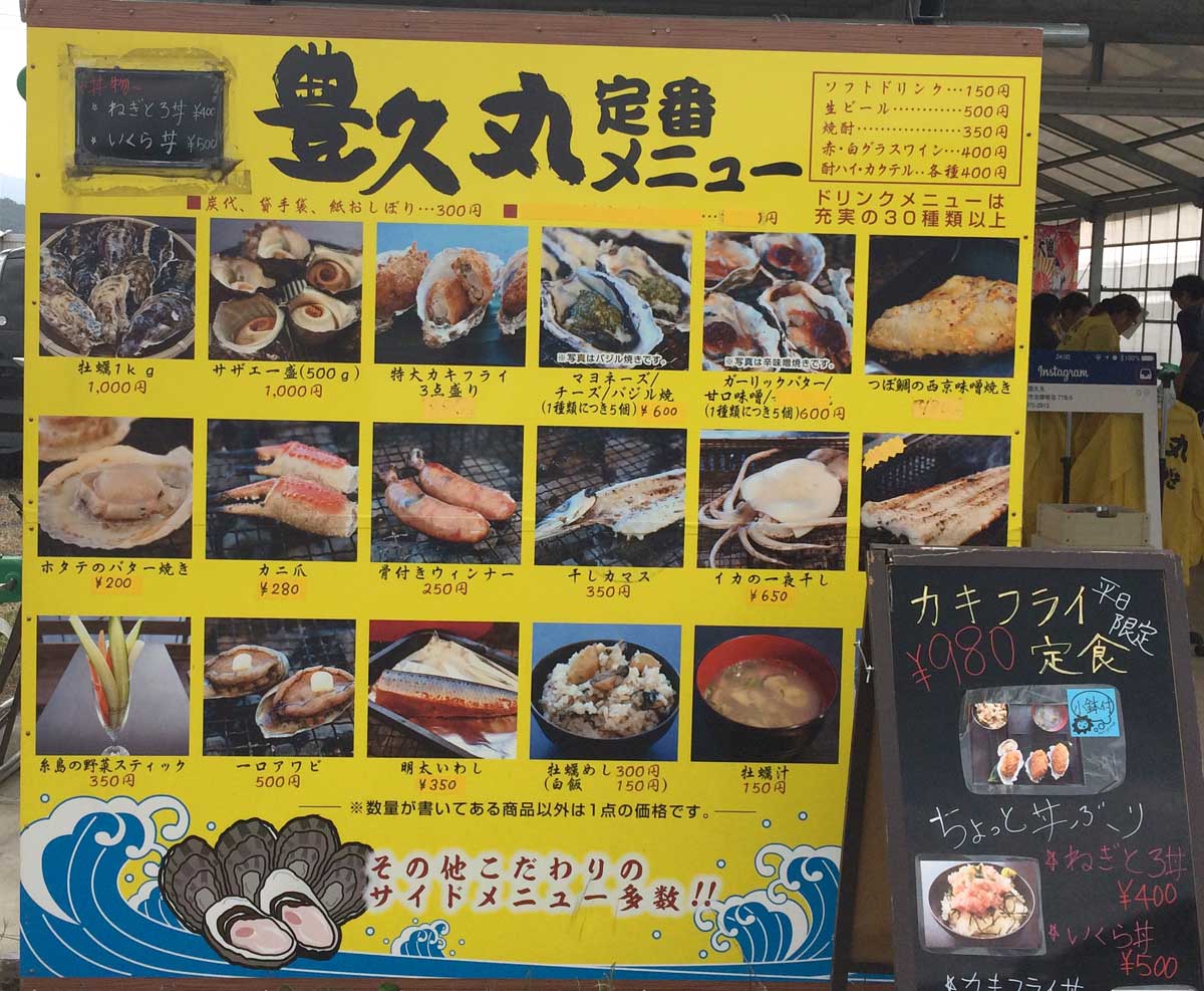 糸島の牡蠣小屋 2017年秋シーズンの店頭メニュー