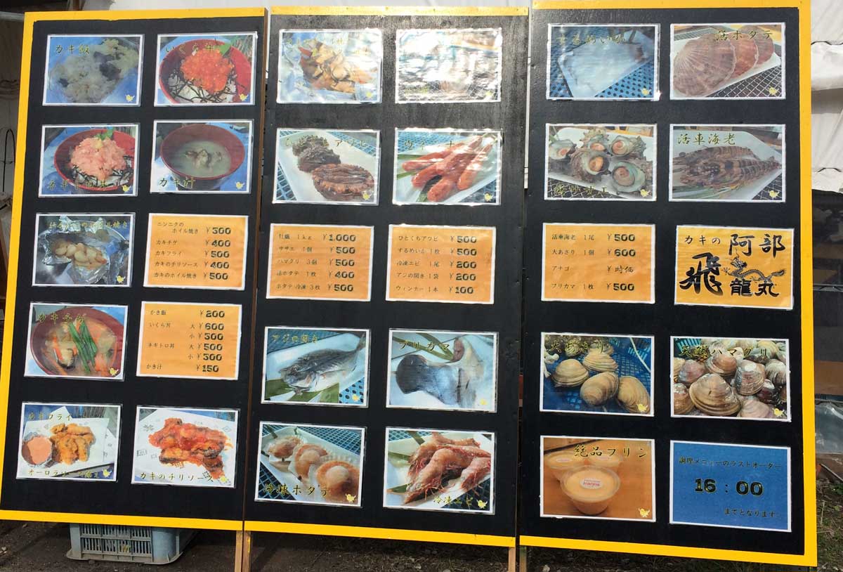 2017年秋シーズン 牡蠣小屋の店頭メニュー