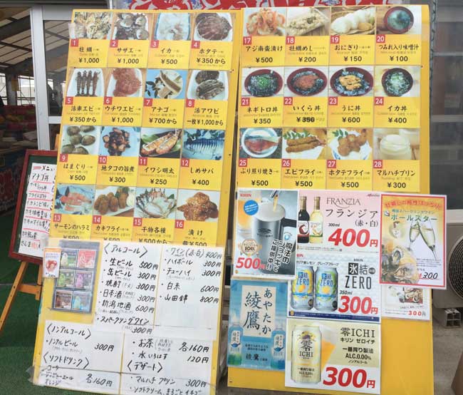 一夜干しが名物だったのですが、丼物を前面に出してきました。 新鮮な刺身も各種あります。 ケンちゃんかき 店頭メニュー |