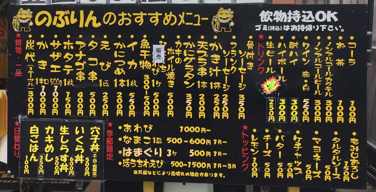 基本は焼き牡蠣 肉類、ソーセージ類の持ち込みできるところが魅力です。 伸栄丸 店頭メニュー |