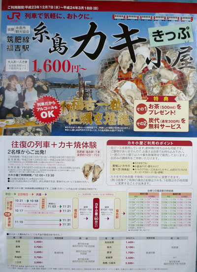 JR九州では、今「糸島カキ小屋キップ」を発売中!